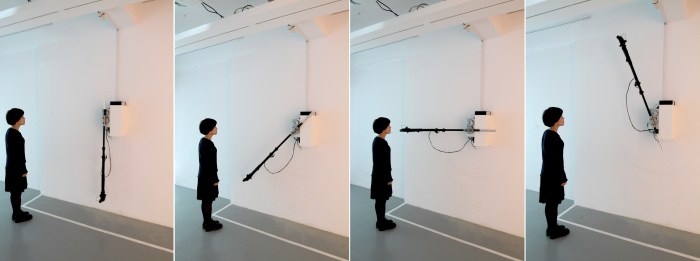 Vacuum2-Time Frame is a series work of previous one: Vacuum (2011). Continuing the spatial inquiry of self- observation, this work tries to reverse a standard monopod into a custom photographic tool, leads the installation to affect camera, carrying up a invisible framing movement (unceasingly alternating between height lift and freefall) as a dialogue model into space, to raise question toward the message manipulation of mass media in contemporary